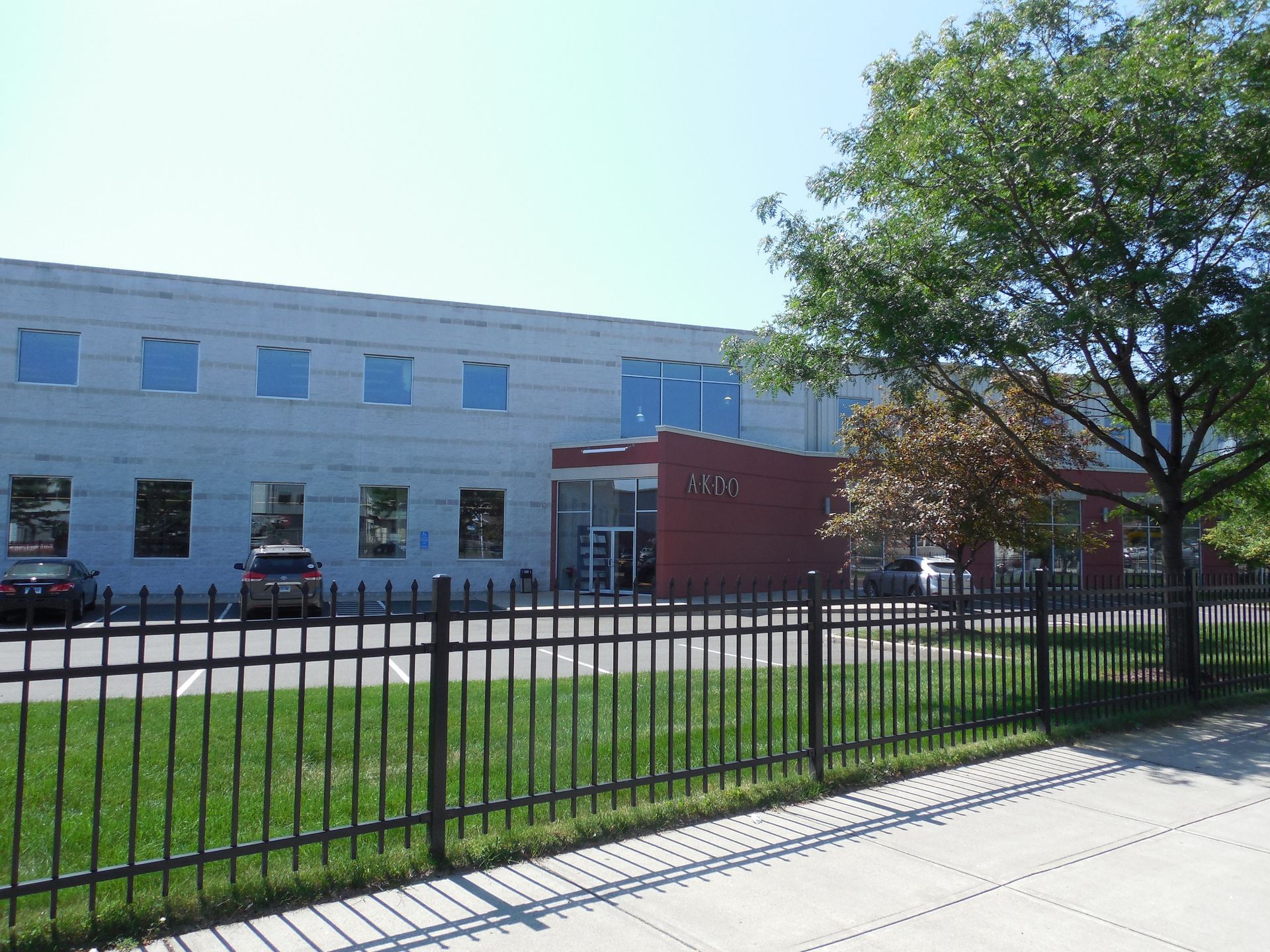 - Office and showroom entrance welcomes customers with a modern inviting entry and foyer. Exterior finishes are E.I.F.S. (stucco finish) wall and floor to ceiling windows. Once inside there is a two-story contemporary styled atrium with open balconies and stairs. The second floor office exterior features textured masonry walls with large windows bringing in plenty of natural light into the office and showroom areas.