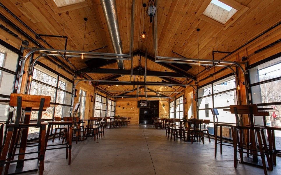 - Large 14,000 SF production brewery with 12,300 SF, two-story retail tap rooms and private party rooms with outside entertainment spaces. Adjacent existing two-story building is for business office and storage.