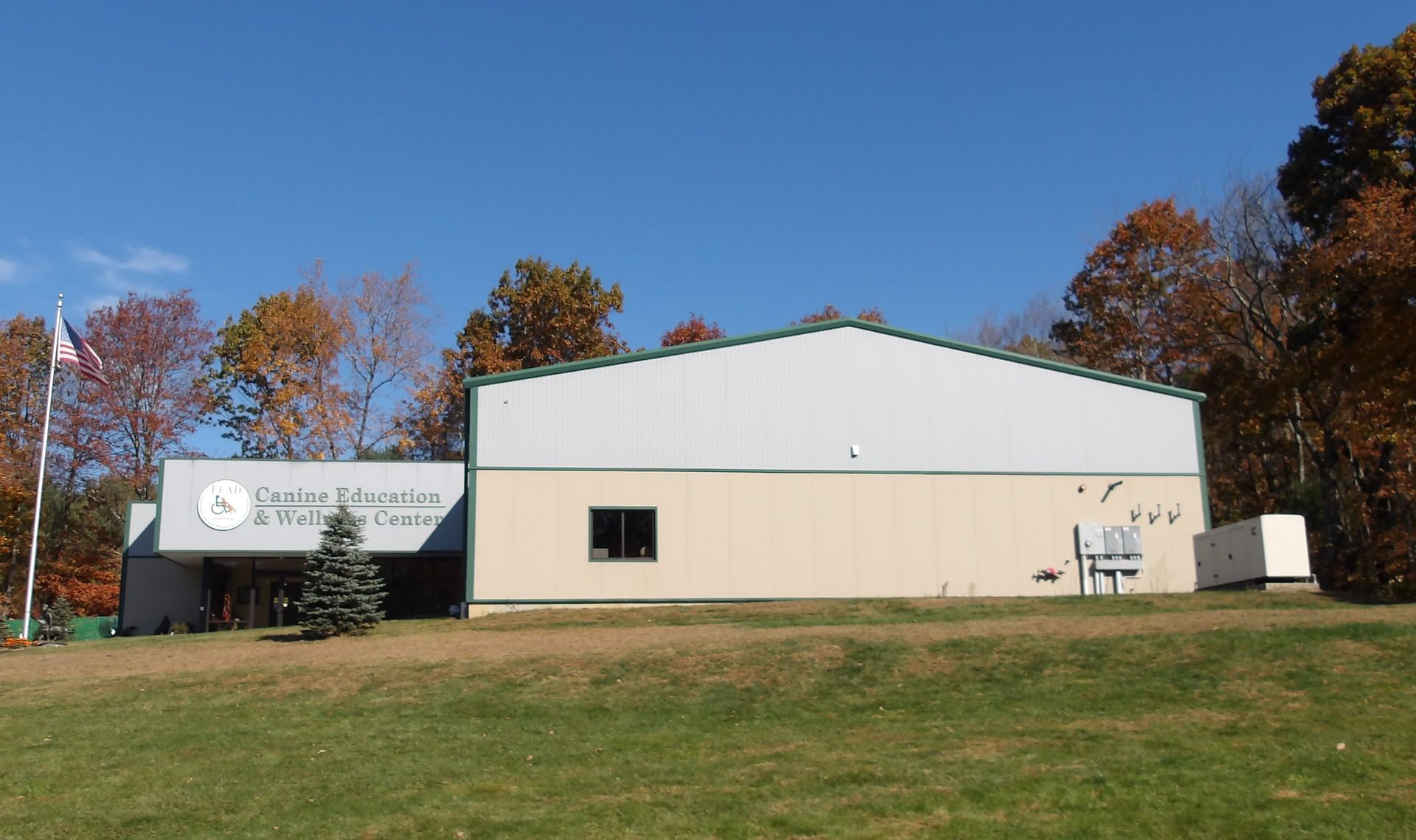 - There is a large 33’x 14’ overhang with a 9’ high glass storefront at the main entrance that greets visitors with an open, bright reception area. The client classroom spaces have a 2:12 sloped Butler MR24 standing seam roof system. The remainder of the client classroom exterior uses Butler “Thermawall” metal insulated panels. There are two overhead doors that service the dog training area to allow large objects to be brought in.