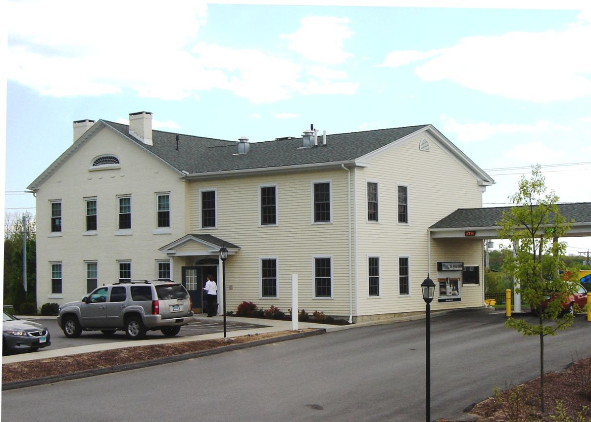 - Project consisted of renovation and structural rehabilitation of an existing restaurant into a bank. A 1950’s era block addition was removed from the brick colonial main structure to make way for teller and office space. Architectural fluted columns were used to decorate the front elevation.