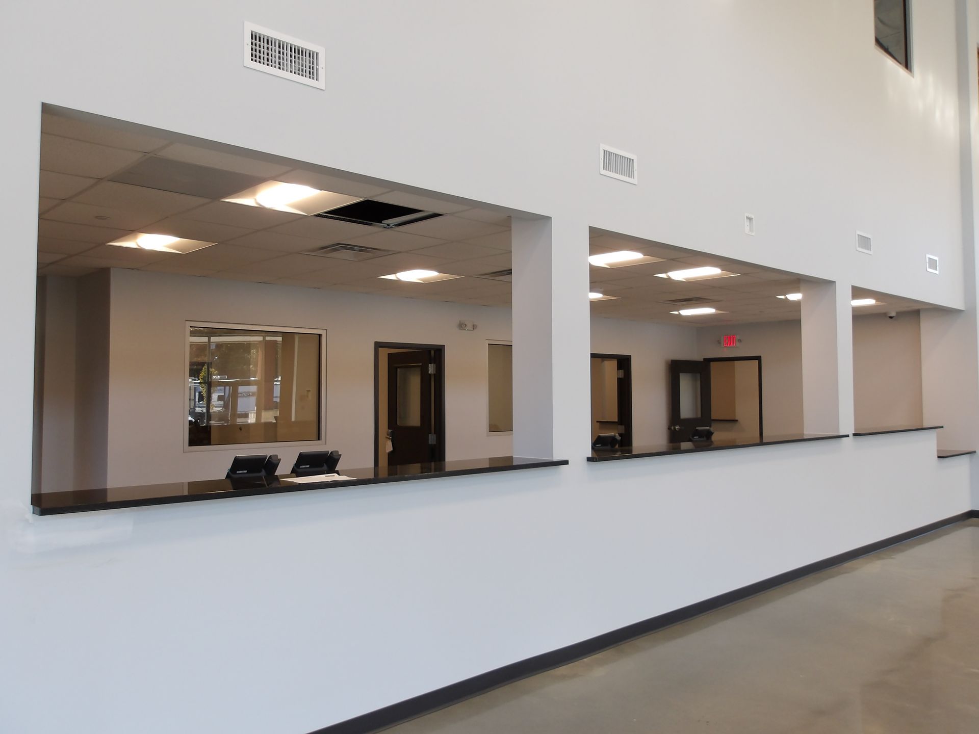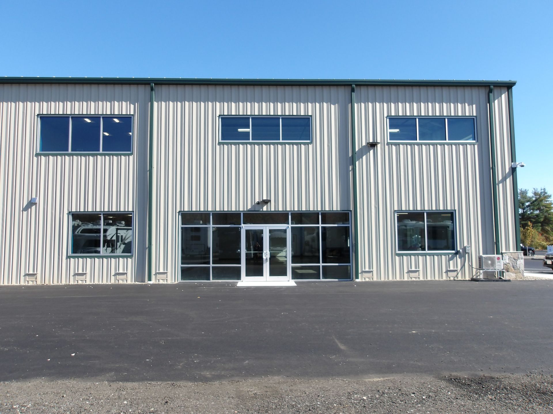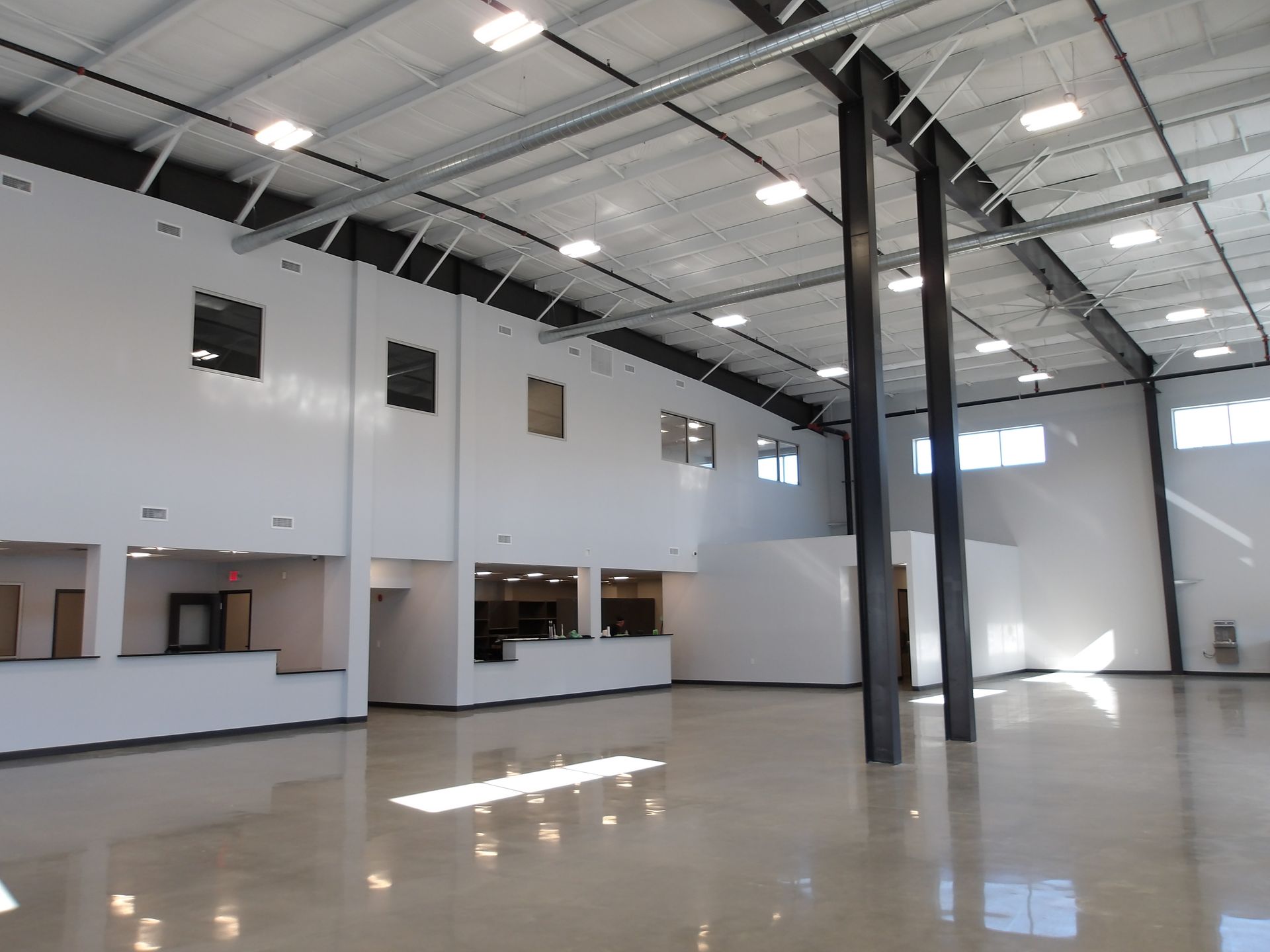 - This building is a 26’ high eave height building with a two story sales/ office/ retail portion. It features a large 60’x13’ gable end canopy supported by stone veneer and rough sawn wood columns at the showroom entrance with large floor to ceiling window units to let plenty of natural light into the showroom/ parts counter area. The showroom exterior walls feature a 3’-6” high culture stone veneer with metal ribbed panel above. A standing seam metal roof covers the entire structure. The remainder of the shop/ maintenance bays have a 26 high ribbed metal panel. There are sixteen 12’x 14’ overhead doors to allow large trailers and motor-homes to be serviced.