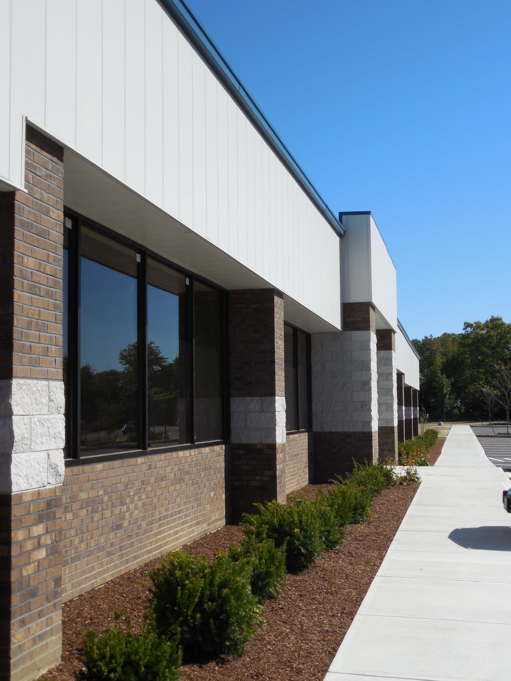 - Attractive modern office with two-tone Butler Shadowall metal wall panels over 4’ masonry with 6’ high windows above. Building exterior feature is a tinted glass vestibule at the office entrance. The remaining exterior finishes are two-tone Butler Shadowall metal wall panels over 4’ masonry at manufacturing space.