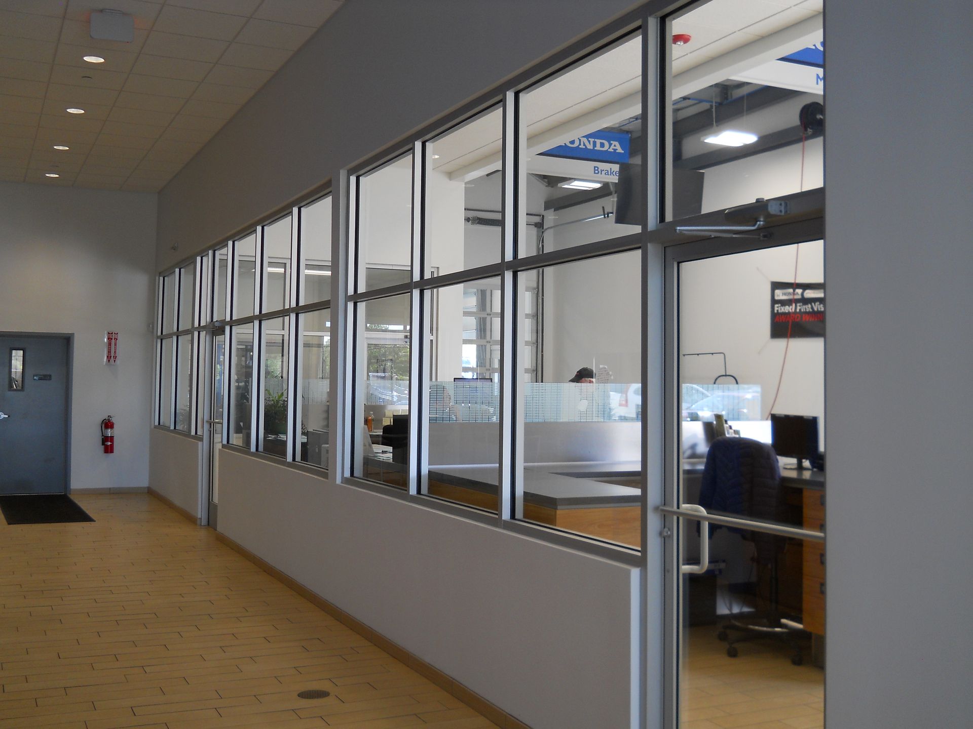 - The showroom exterior has a 27’ high E.I.F.S. (stucco finish) wall system with 15’ to 18’ high showroom windows to let plenty of natural light into the showroom area. There are plenty of floor to ceiling window in the business and showroom offices to also add natural light in. It features a large circular entry atrium with glass and A.C.M. panel at the main entrance to the showroom, a 4’ trellis overhang that runs across one side of showroom area above the windows.