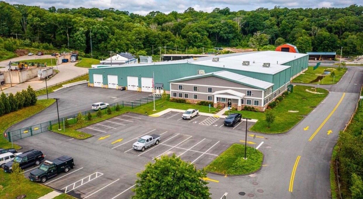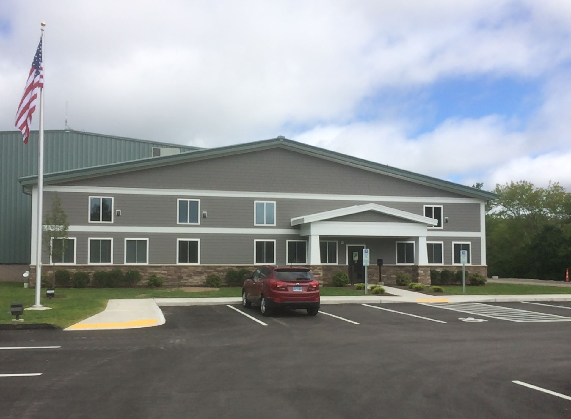 - The garage and maintenance portion of the facility has a 26’ high eave. The exterior utilizes a 4’ high split-face masonry knee wall with standard- face accent band and Butler Shadow-rib metal wall panels above.