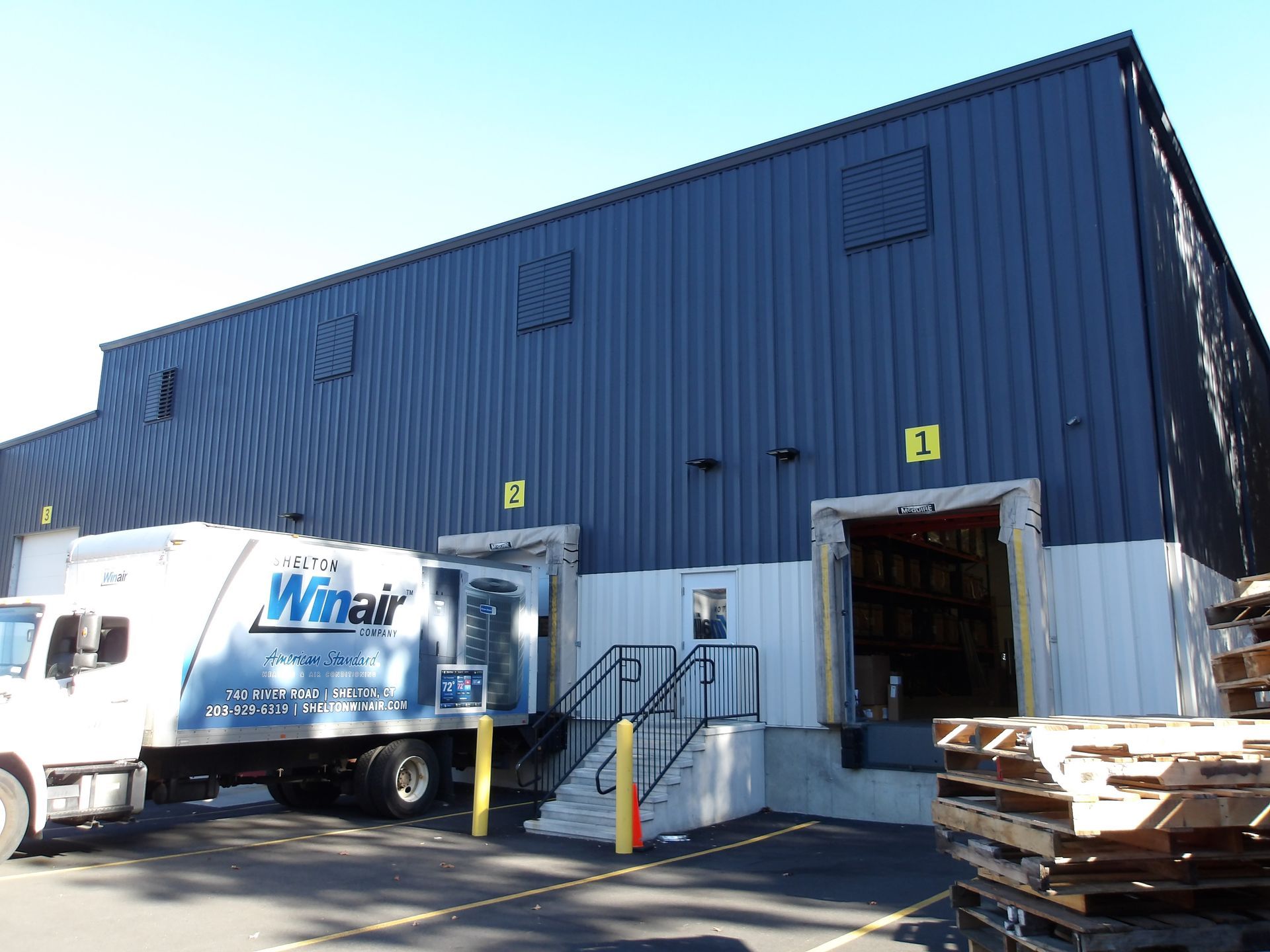- This addition to the existing warehouse has an eave height of 28’. The new addition is covered with a metal standing seam roof. The exterior finish of the addition has a two tone metal ribbed panel. There four 8’x 9’ dock overhead doors and one 12’x 14’ drive in overhead door.