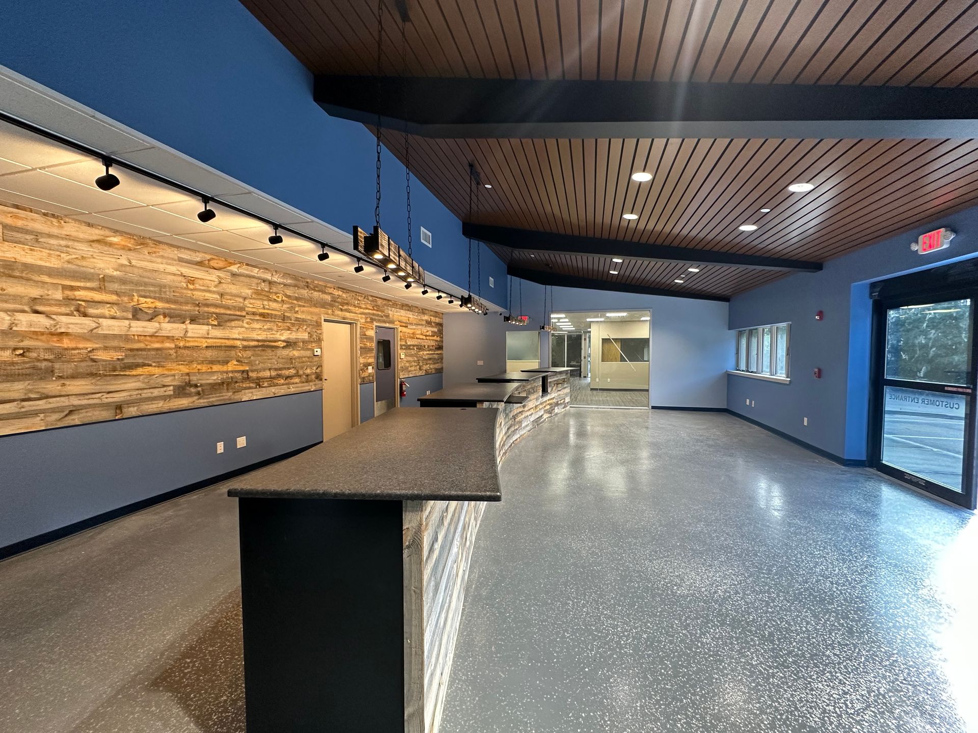 - The front of the existing building was renovated into a customer retail showroom and offices. There is a large 8’ x 7’ automatic sliding door at the main customer entry.
