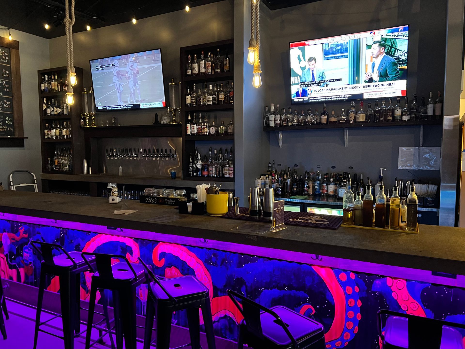 - Interior renovation consisted of new sheet rock partitions, a contemporary bar, seating areas, a small prep kitchen, and lavatories.